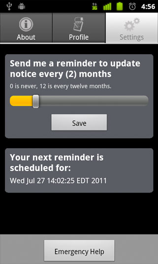 The Child Alert application allows you to easily create and store your child's digital profile directly on your cell phone, so you can carry it with you wherever you go. Time is precious in case of an emergency. With Child Alert you can instantly email your child's profile to proper authority thereby allowing you to gain valuable time and consequently permitting authorities to treat the emergency much more expeditiously. The application also prompts you to update the stored information at a frequency of your choosing so that the profile is constantly kept up to date. Child Alert is an essential tool for all caring parents.