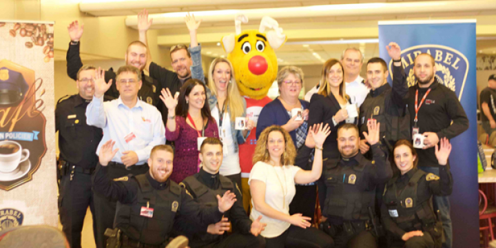 Mirabel, le 1er décembre 2015 - Le 25 novembre dernier durant la période du dîner chez Bell Helicopter, sept policiers du service de police de Mirabel, accompagnés de représentants de l’organisme Opération Nez Rouge et d’employés des comités sur la santé, la sécurité et le mieux-être de Bell Helicopter, ont participé à l’évènement "Café avec un policier".